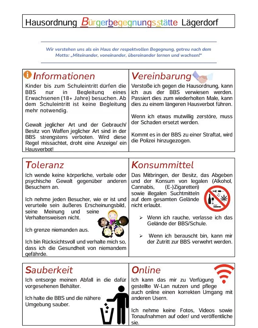 Die BBS arbeitet nach dem Gedanken der Freiwilligkeit, das bedeutet, jeder kommt und geht wann er oder sie es möchte.