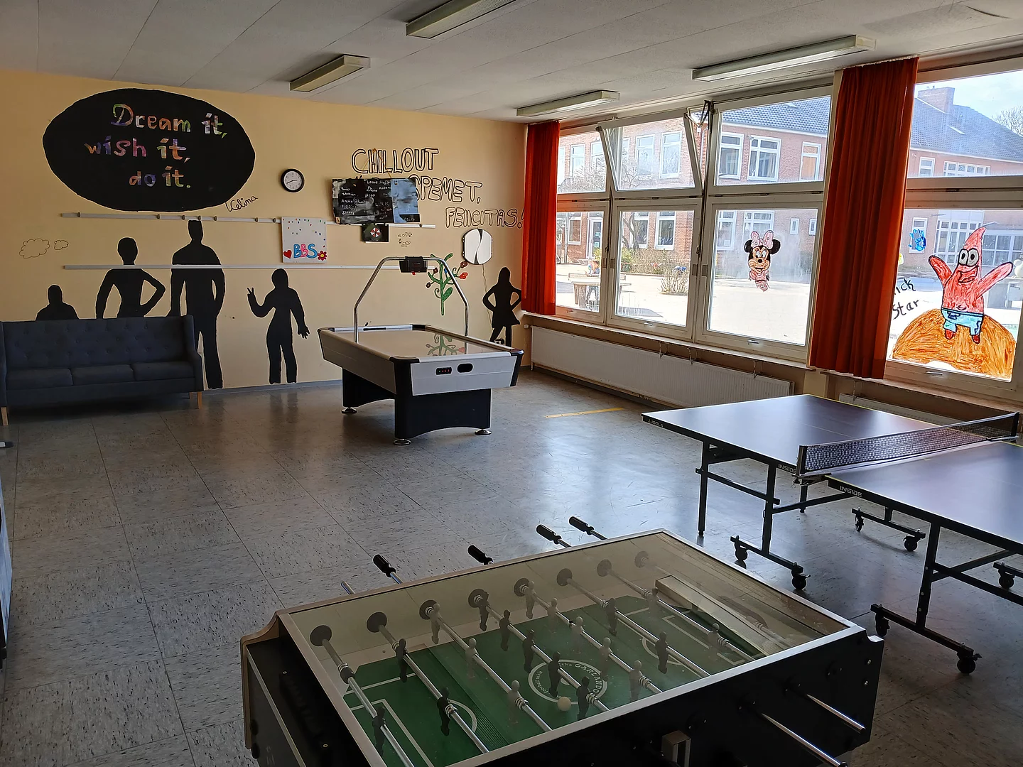 Das Gebäude an der Schule bietet den Besucher*innen 3 Räume und einen geräumigen Flur als Anlaufstelle und Treffpunkt in ihrer Freizeit. Hier können sie Hilfestellung zu sämtlichen Lebenssituationen erhalten oder sich mit anderen treffen und austauschen. Verschiedene täglich zur Verfügung stehende Angebote können selbstständig genutzt werden. Zur Verfügung stehen