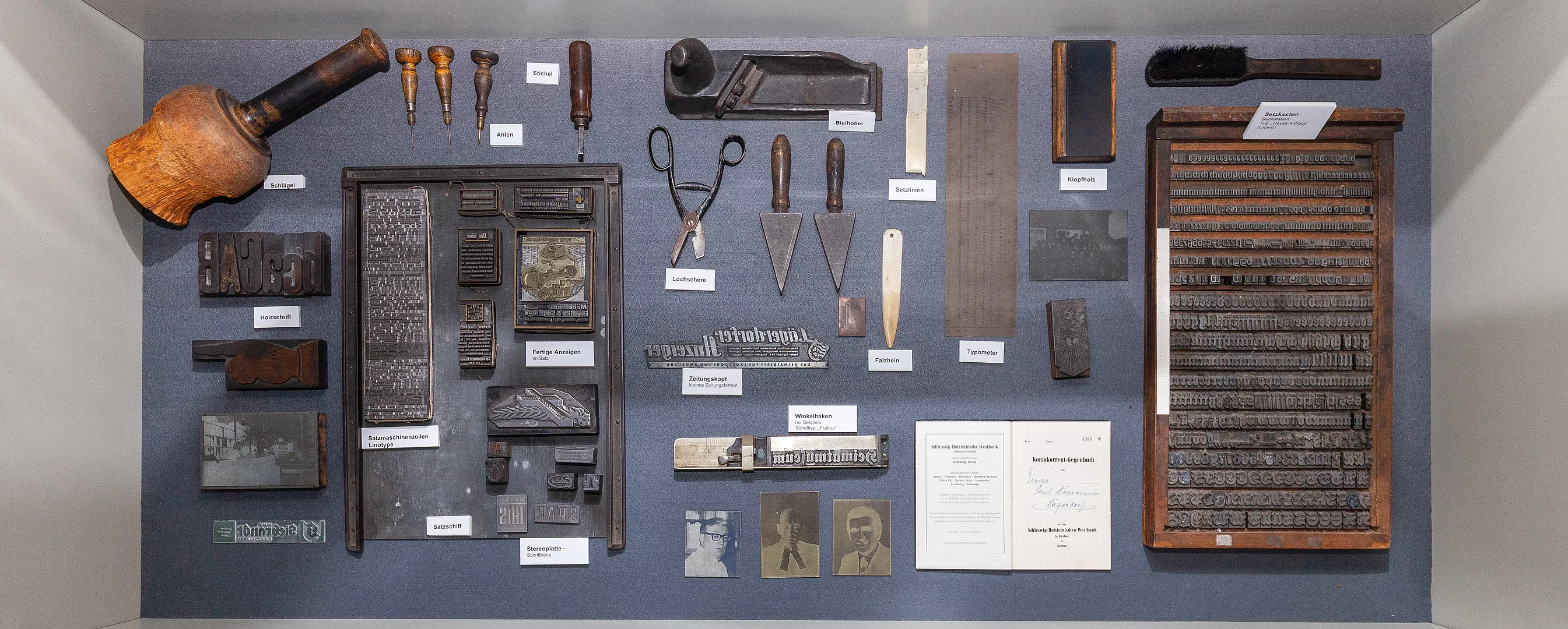 Im großen Raum „Alt Lägerdorf” im Erdgeschoss finden sich neben einem aufwändig restaurierten Hochrad auch ein Modell des „Lägerdorfer Ewer”, Utensilien der Buchdruckerei Paul Hußmann (Lägerdorfer Anzeiger), sowie zahlreiche weitere Ausstellungsstücke, z.B. aus früheren Schulzeiten. Außerdem sind hier Aquarelle des Künstlers Hermann Degkwitz und viele Fotos aus dem alten Lägerdorf ausgestellt.