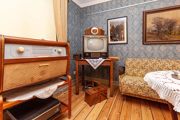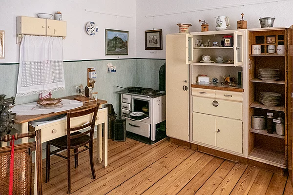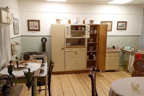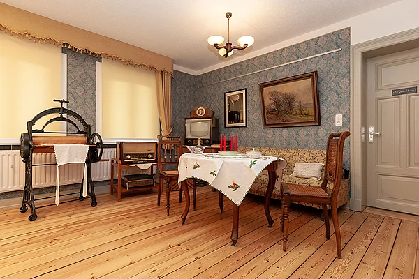 Im oberen Stockwerk befindet sich De goode Stuv, die einen Einblick in den Wohnstil und die Lebensweise Lägerdorfer Bürger aus verschiedenen Jahrzehnten bietet. Neben Mobiliar sind auch viele Haushaltsgegenstände ausgestellt.