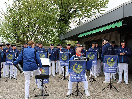 Der Lägerdorfer Shanty Chor eröffnete um 10.30 Uhr mit einem kleinen Konzert den Jubiläumstag. Sie begeisterten wie gewohnt ihr Publikum, aber ganz besonders unsere Gäste aus Niedersachsen, die schunkelnd der Musik lauschten.