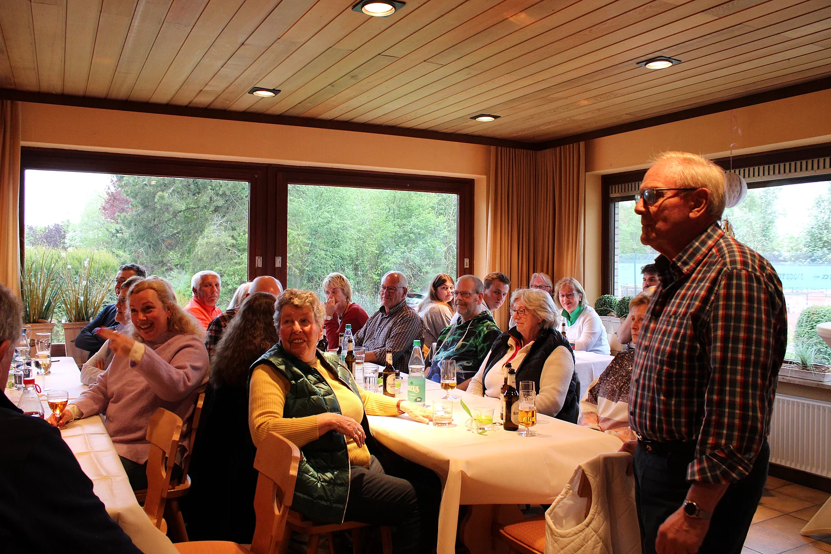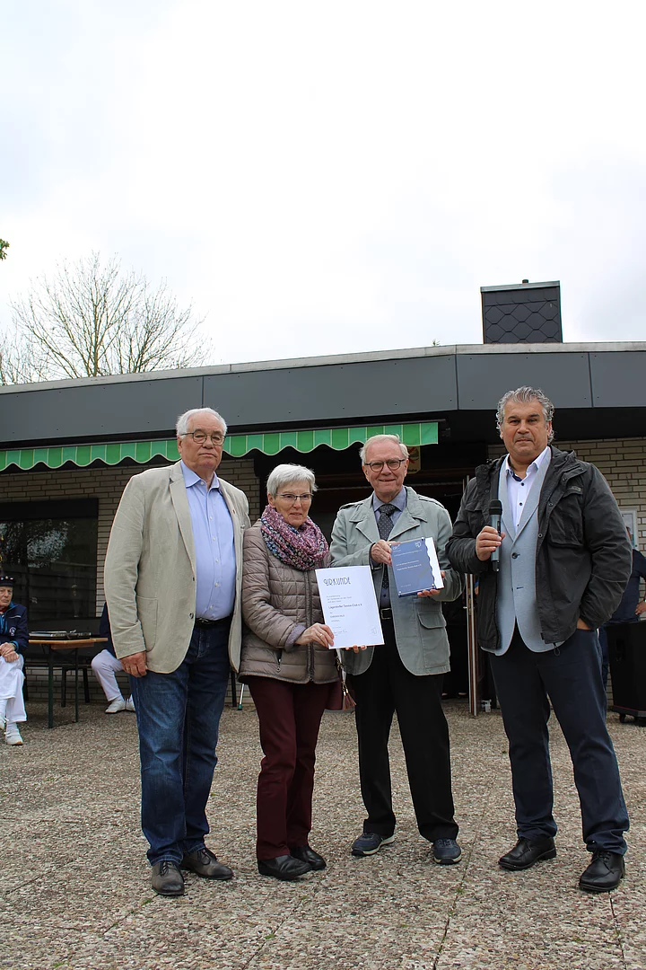 Es begann schon am Freitag. Vereinsvorsitzender Oswin Seifert hat die Gründungsmitglieder, die auch bis heute dem Verein treu geblieben sind, eingeladen. Im schmucken Zwirn sind die Gäste gekommen und haben einen wunderbaren Abend genossen. Nach der Ansprache und dem dicken Dankeschön für die Gäste, zeigte Gründungsmitglied und noch aktiver Tennisspieler Dr. Eckard Hallmann eine Filmokumentation der letzten 50 Jahre. Dies hat er so lebendig gezeigt, dass die Zuschauer sich auf einer Zeitreise durch den LTC befanden.