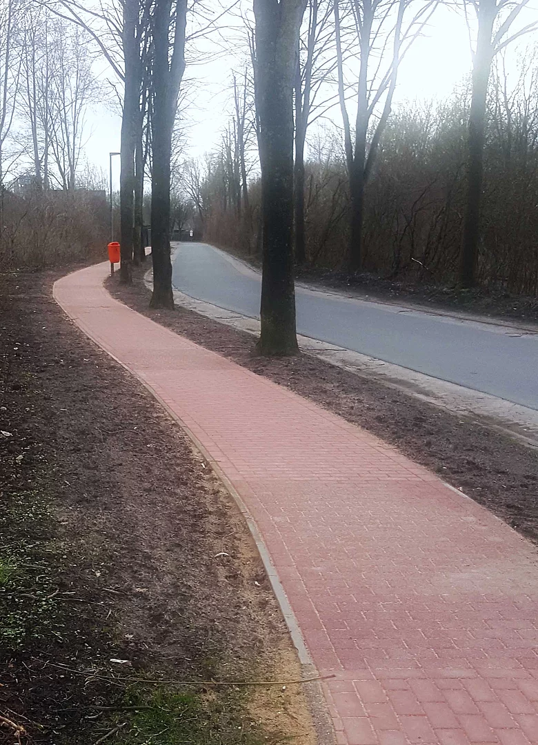 In der Straße Am Jahnplatz wurde jetzt der Bürgersteig zwischen den Straßen Am Ringofen und der Heidestraße neu gepflastert. Dies war erforderlich, da das Wurzelwerk der Linden die Pflasterung des Fußwegs großflächig beschädigt hatte. Im Bereich der Linden wurden offenporige Betonpflastersteine, die zusätzlich mehr Regenwasser ableiten können, eingesetzt. Text und Foto: Christian Droßard