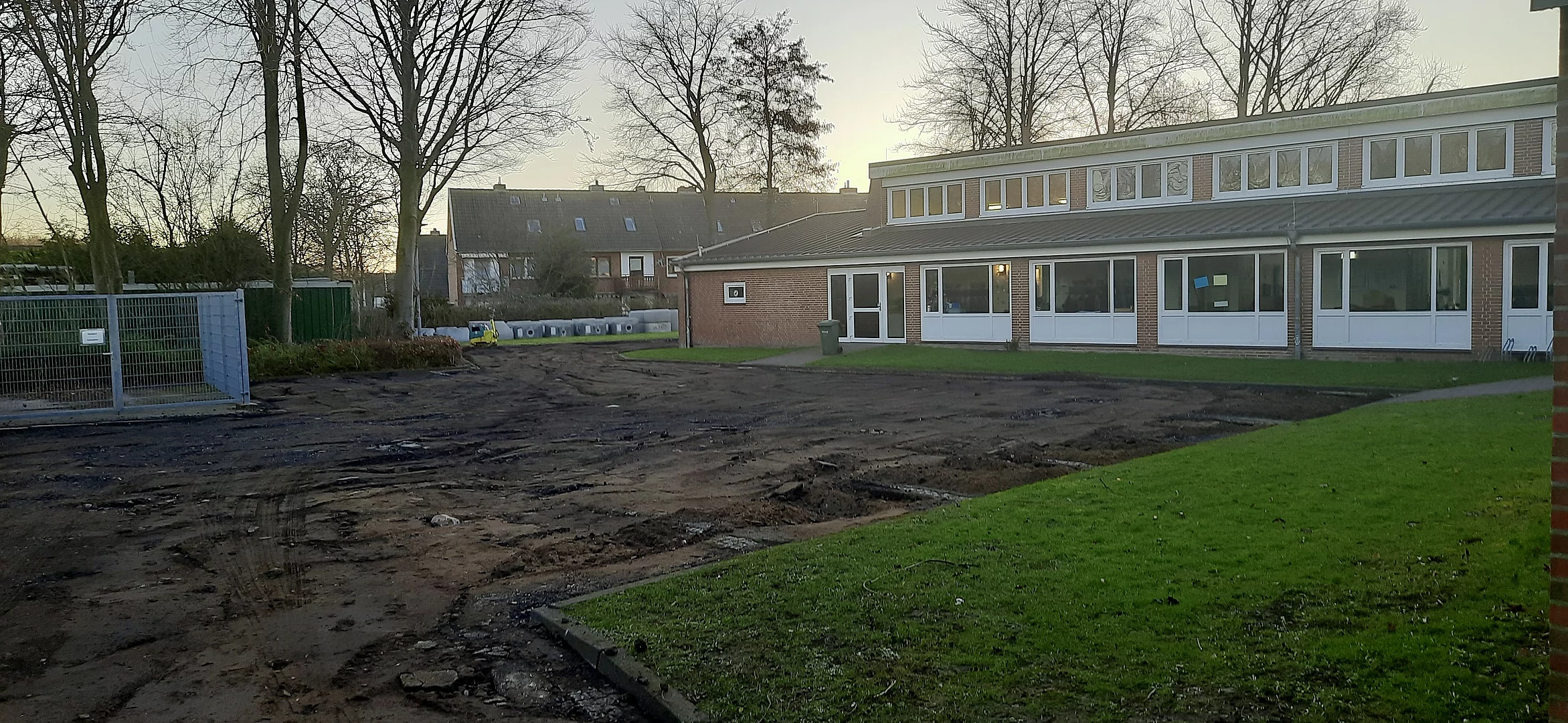 Auf dem Schulgelände haben umfangreiche Bauarbeiten begonnen. Es werden hier die seit Jahren maroden Schmutzwasserleitungen und die Oberflächenentwässerung erneuert. Weiter wird ein unterirdisches Regenrückhaltesystem geschaffen, um vor Überflutungen zu schützen.