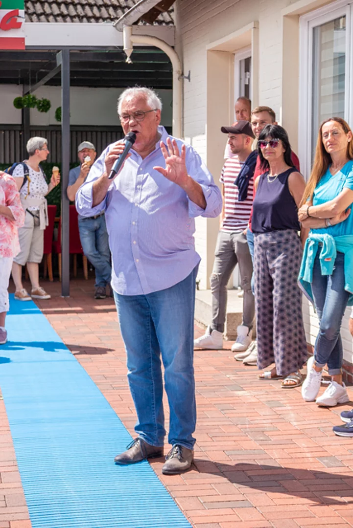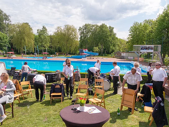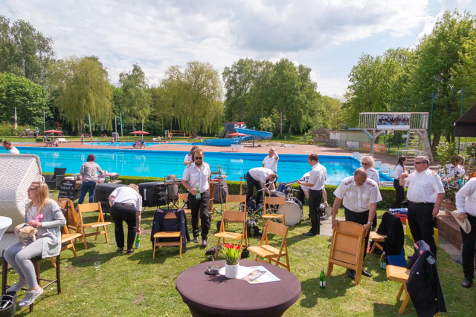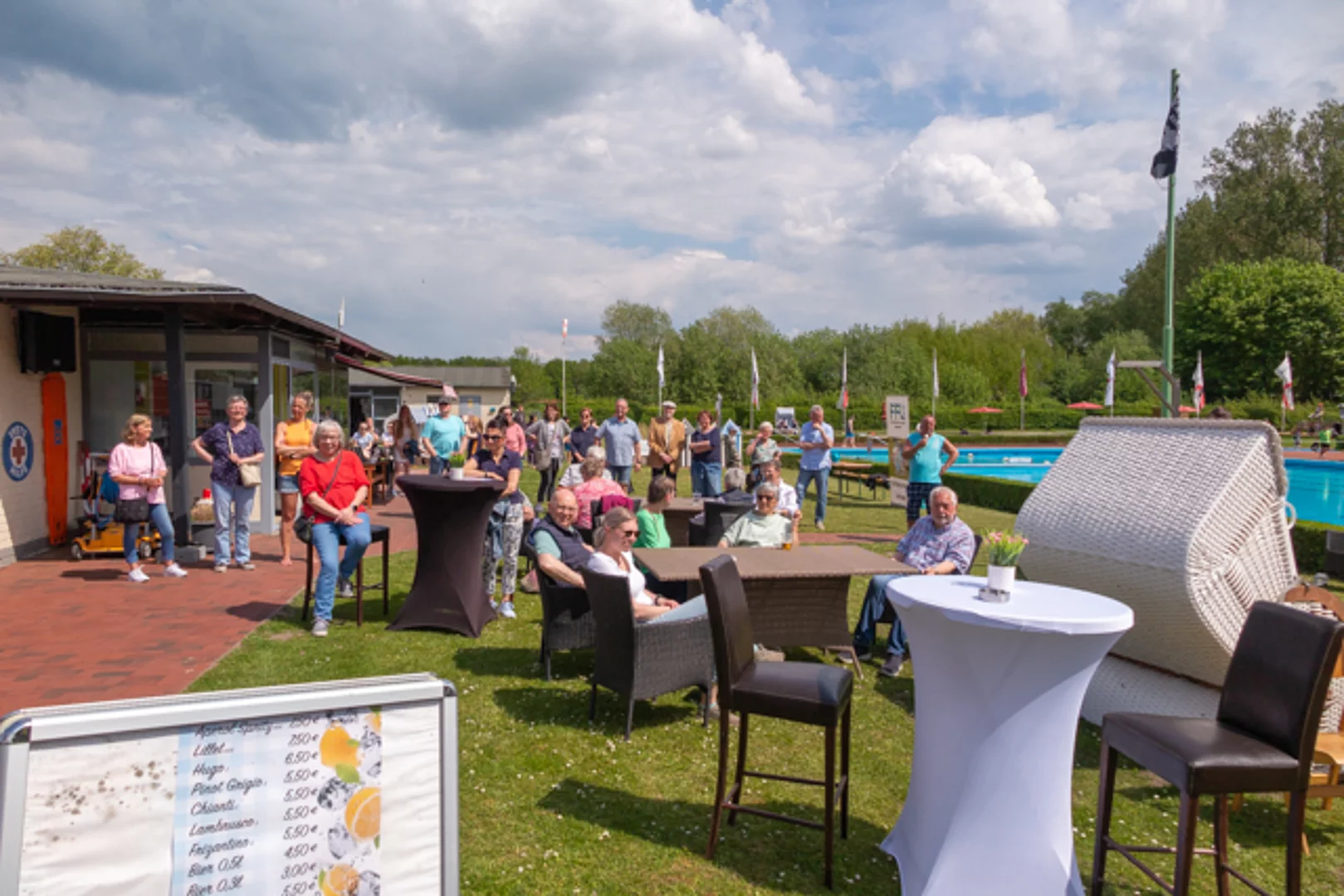 Es war ein Kommen und Gehen an diesem Nachmittag, und auch viele ältere Lägerdorfer nutzen die Gelegenheit zu einem Klönschnack bei einem kühlen Getränk. An der Freibadgastronomie von MammaMia II bildeteten sich lange Schlangen, um ein leckeres Eis oder knusprige Pommes zu ergattern.