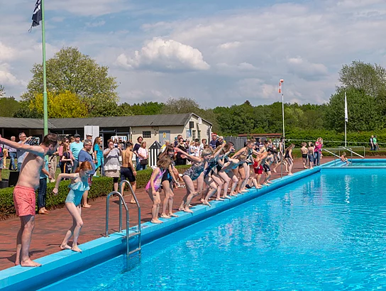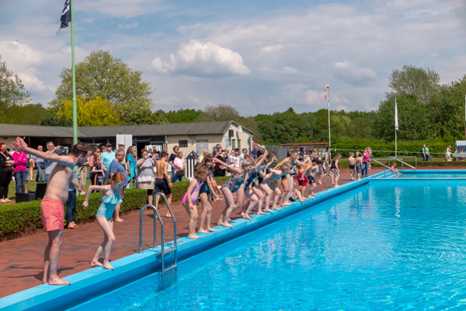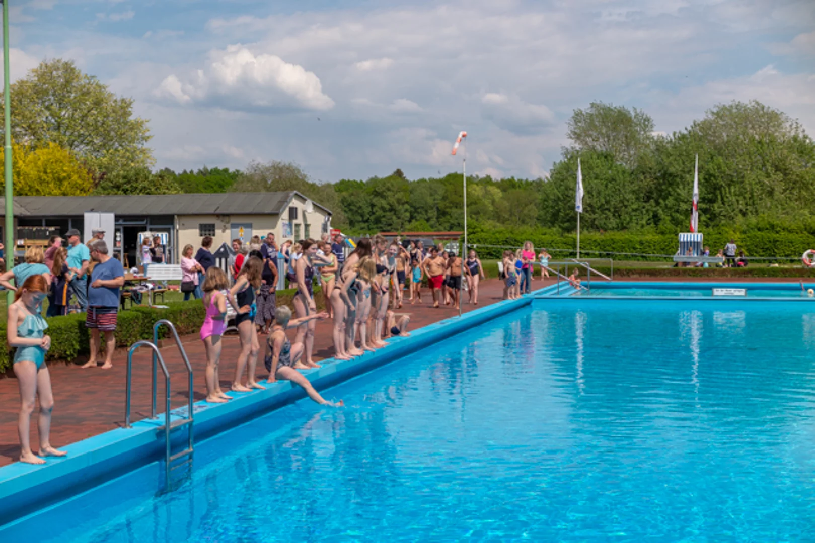 Bei herrlichem Frühlingswetter ging am Sonntag die Eröffnung der Freibadsaison vorstatten. Nach dem Konzert des Musikzuges der Freiwilligen Feuerwehr Lägerdorf und den Eröffnungsansprachen durch Bürgermeister Jürgen Tiedemann und des FFL-Vorsitzenden Peter Böge freuten sich vor allem die zahlreich erschienen Kinder auf den Startschuss zum Anbaden. Auch wenn die Wassertemperatur noch alles andere als einladend war, sprangen sie tapfer in die Fluten.