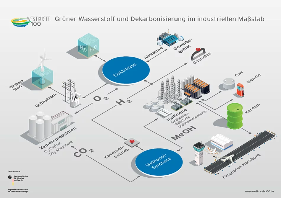 Künftig nachhaltiger fliegen, bauen und heizen, das ist das Ziel des “Reallabors Westküste 100”. Dabei soll eine regionale Wasserstoffwirtschaft im industriellen Maßstab abgebildet und skaliert werden. Die Voraussetzungen dafür sind gerade an der Westküste Schleswig-Holsteins einzigartig: Hier treffen eine starke Windenergie-Region sowie ausgezeichnete geologische Speicherbedingungen auf innovative Unternehmen, die die Zukunft aktiv gestalten und einen wichtigen Beitrag zur Erreichung der Klimaschutzziele liefern wollen. Holcim ist einer der Partner des Projektes.