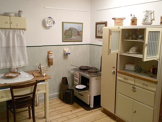 „De goode Stuv“ wurde u.a. um eine Originalküche aus dem Jahr 1950 sowie mit einem alten Küchenherd aus Lägerdorf ergänzt.