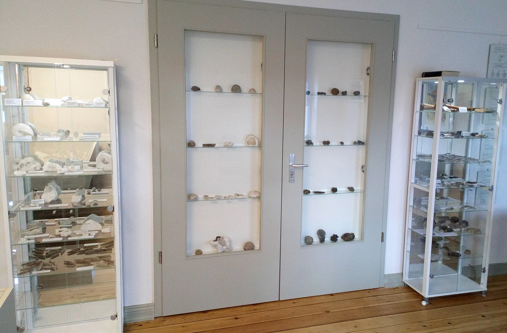 Aus Platzgründen wurde die bisherige Verbindungstür zum nächsten Raum „Fossilien und Steinzeit“ vorerst geschlossen, so dass sich dadurch weitere Ausstellungsflächen ergeben.